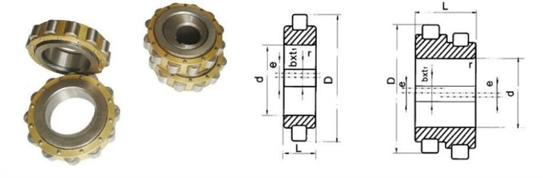 偏心轴承是摆线针轮减速机里的一个很重要的轴承。原始的偏心轴承有三部份组成:一个偏心套和两个502系列圆柱滚子组成.偏心套和轴承的里圈整合为一体,形成偏心轴承。偏心轴承主要包括外圈、内圈、滚动体花篮、滚动体,其特征是:内圈的内孔为偏心孔,在偏心孔的内侧壁上有一纵向键槽。该偏心轴承结构简单、使用方便,不需要偏心轴就能实现偏心功能,使偏心机构大为简化,同时使偏心机构的机械加工省工、省时、装配容易,降低了偏心机构的制造成本。