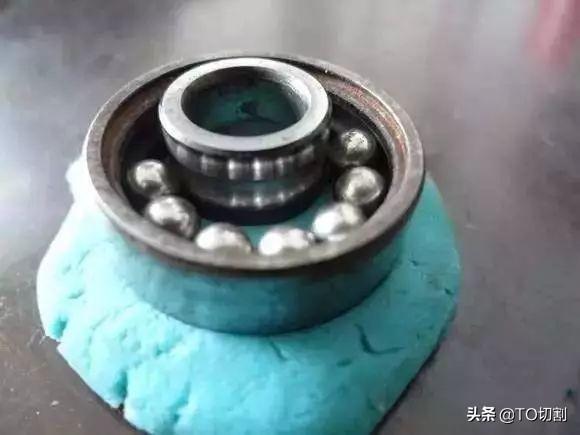 把轴承的内外圈按图上的方法放在橡皮泥上,稍稍按进去点。