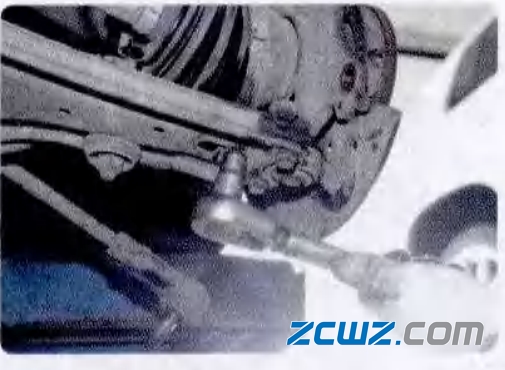 (4)拆下转向拉杆球头下的螺母,并使用球头钳使转向节与转向拉杆分离(如图3所示)。严禁使用锤子直接敲打球头,以免造成永久性损坏。