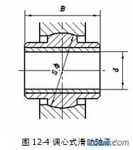 3.调心式滑动轴承 当轴颈较宽(宽径比B/d>1.5)、变形较大或不能保证两轴孔轴线重合时,将引起两端轴套严重磨损,这时就应采用调心式滑动轴承。如图12-4所示,就是利用球面支承,自动调整轴套的位置,以适应轴的偏斜。