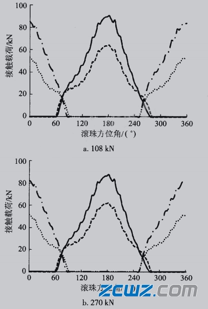 图6内、外圈与激励有差异时接触载荷分布